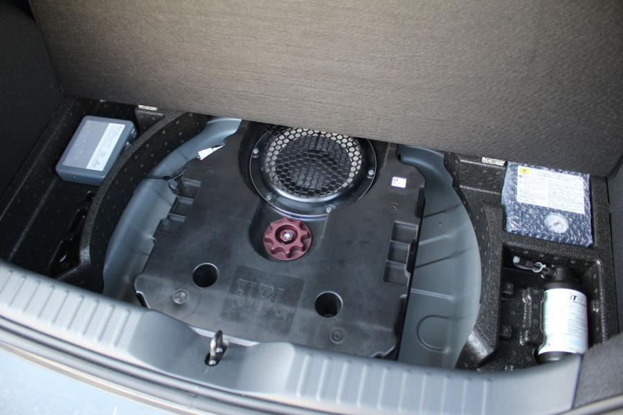 Ispod njegovog poda je u našem slučaju sabvufer JBL ozvučenja, dok po potrebi može da se smesti rezervni točak punih dimenzija.