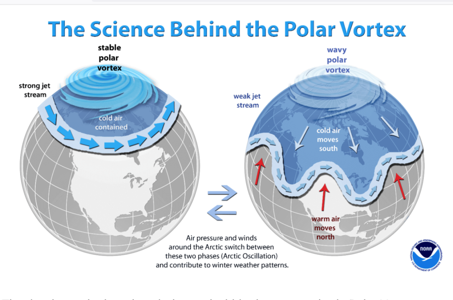 Nasuprot tome, slab polarni vrtlog može poremetiti mlazni tok, što otežava zadržavanje hladnog vazduha koji u takvoj situaciji može da probije put od polarnih regiona do Sjedinjenih Država ili Evrope. Ovaj prodor može biti nezgodan jer za kratko vreme znatno pada temperatura.