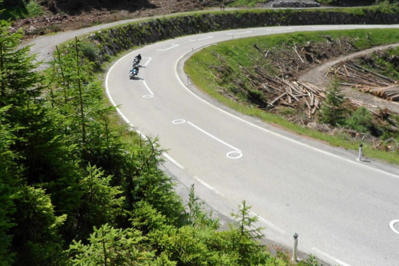 Austrijski odbor za bezbednost na putevima (KFV) sproveo je analizu motociklističkih nezgoda i otkrio da se većina njih događa u krivinama – 95% motociklista bira pogrešnu putanju, obično preblizu središnjim linijama i saobraćaju koji dolazi iz drugog smera.