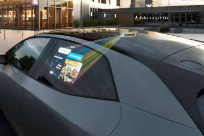 Ova tehnologija omogućava projektovanje sadržaja na zadnja bočna stakla vozila, tako da su prikazi vidljivi spolja.