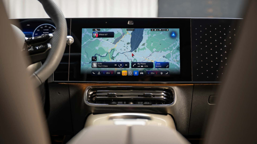 Iako auto spolja deluje poznato, unutrašnjost je potpuno nova. Glavna karakteristika je MBUX Superscreen, sistem sa tri ekrana, okružen crnim sjajnim plastikama.