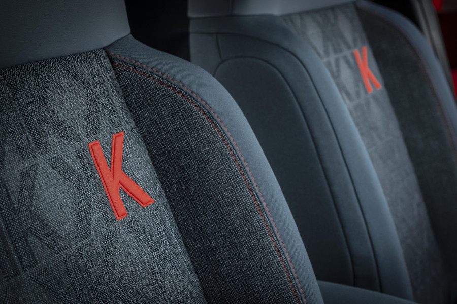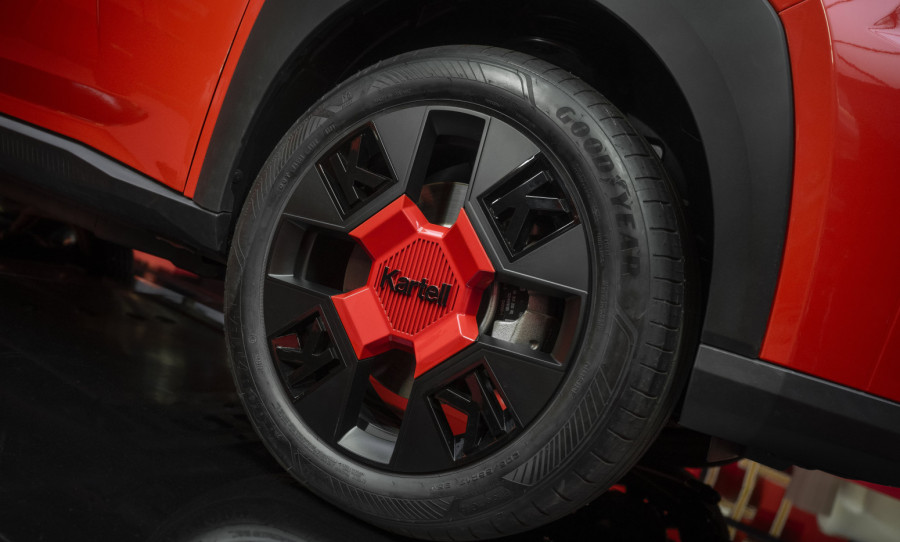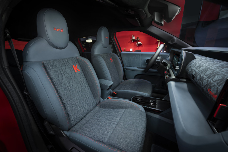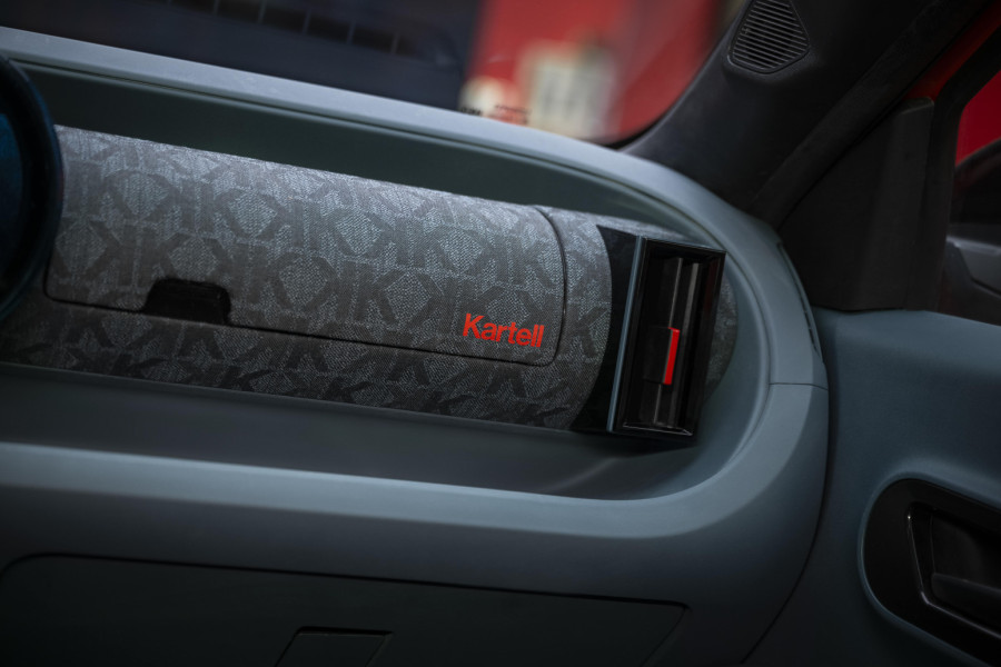 Logo kompanije Kartell postavljen je na nekoliko mesta, uključujući točkove, zadnji deo vozila i C-stub, čime postaje centralni dekorativni element. U unutrašnjosti kabine primenjena je razigrana upotreba brendinga kroz termo-utisnuti monogram na presvlakama sedišta.