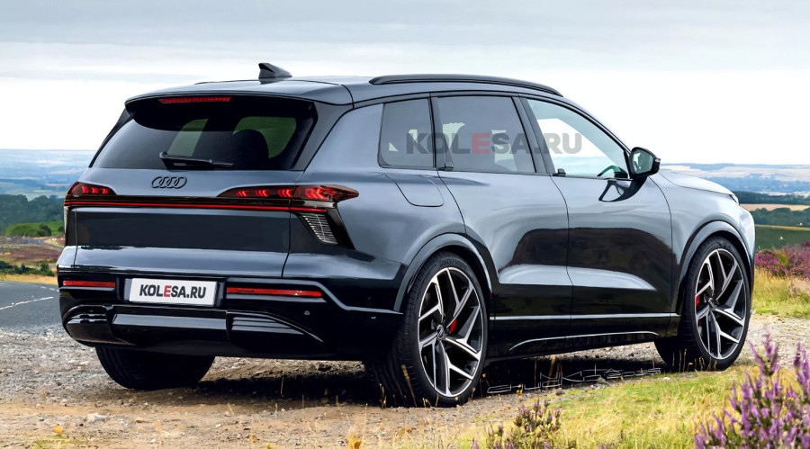 Na zadnjem delu, zadnja svetla Q9 su gotovo identična onima sa novog Audija A6 Avant, sa tankom LED svetlosnom trakom koja ih spaja. Automobil na renderu je takođe prikazan sa sjajno crnim zadnjim branikom.