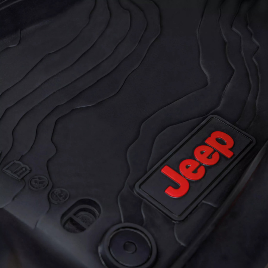 Unutra se nalaze retro ručke i gumene patosnice sa crvenim Jeep natpisom, a tu su i prednja i zadnja kamera.