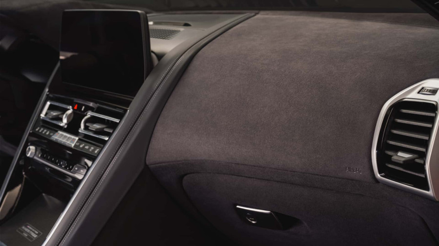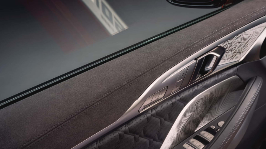 Alcantara se našla i na plafonu, instrument tabli i panelima vrata, a tu su i mat karbonski umetci i M štep u tri boje.