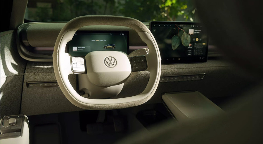 Kabina podseća na ID.2.all koncept, sa digitalnom instrument tablom od 11 inča ispred vozača, dvokrakim "četvrtastim" volanom i centralnim ekranom od 13 inča.