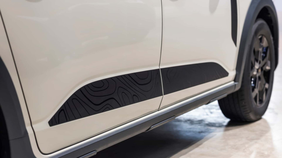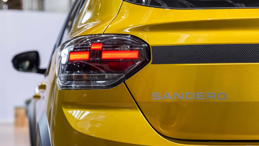 Sandero Stepway sada pozadi ima mat crnu traku koja uključuje ime brenda, iako je jedva vidljiva.