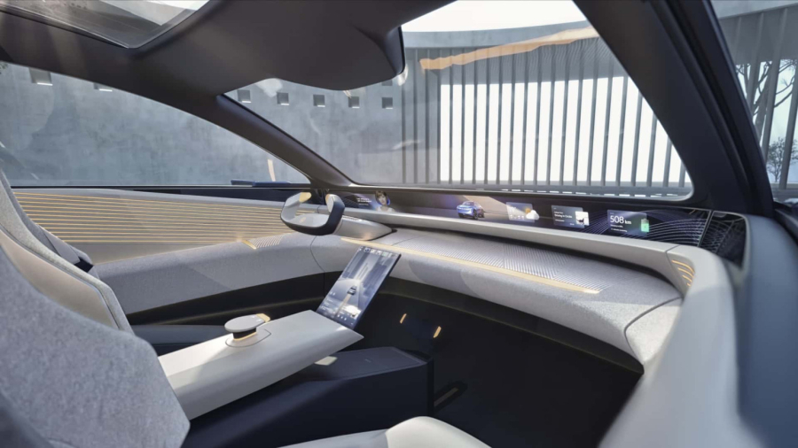 Smešten na instrument tabli, blago zakrivljeni ekran se proteže celom širinom ispod vetrobranskog stakla. Kao da to nije dovoljno, postoji i displej između prednjih sedišta.