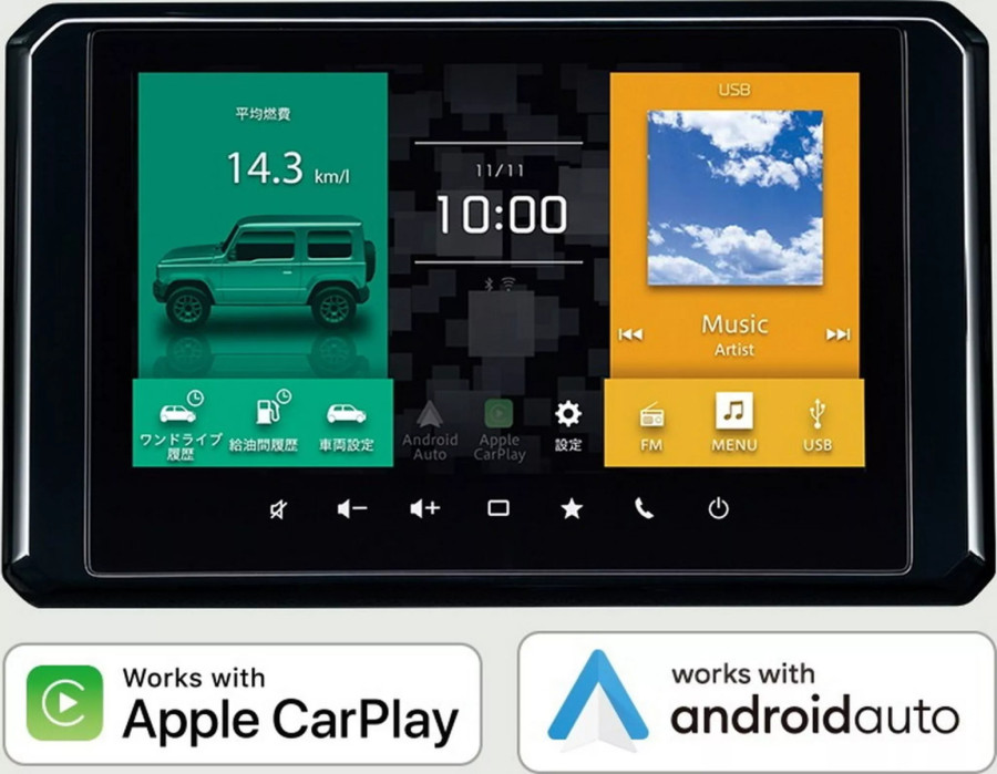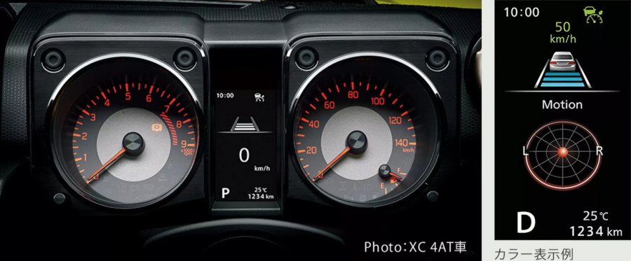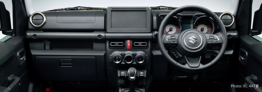 Unapređena varijanta ima 4.2-inčni displej koji je smešten među analogne dugmiće, a kupci se mogu opredeliti i za ekran dijagonale 9 inča koji Jimny pozajmljuje od gradske zujalice, modela Swift (naša recenzija ovde).