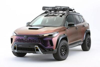 Corolla Cross Hybrid Nasu Edition, jedan od nekoliko konceptnih vozila koja će biti predstavljena na ovogodišnjem SEMA sajmu, ima posebno izrađene dodatke na karoseriji, off-road opremu, podignuto ogibljenje i masivne terenske gume.