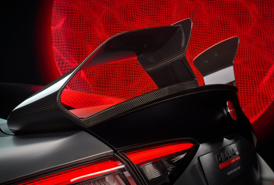 Rezultat je oko 140 kg potiska pri 300 km/h, što je otprilike pet puta više nego kod standardne verzije modela Giulia Quadrifoglio.