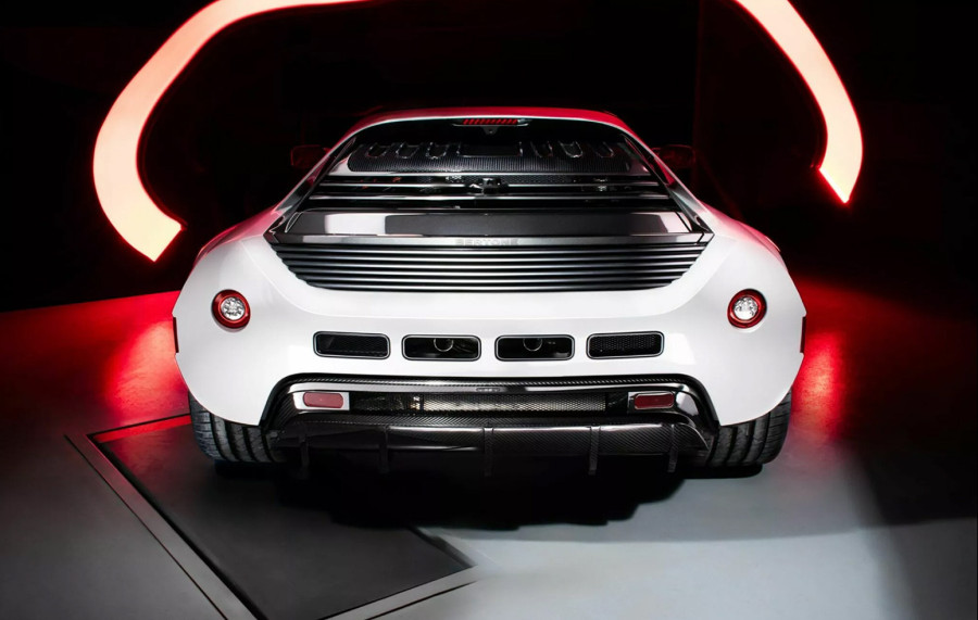 Dug je 3.990 mm, sa kovanim točkovima od 18 inča napred i 19 pozadi, dok zadnji deo krase okrugla stop svetla, karbonski difuzor i centralno postavljeni izduvi.