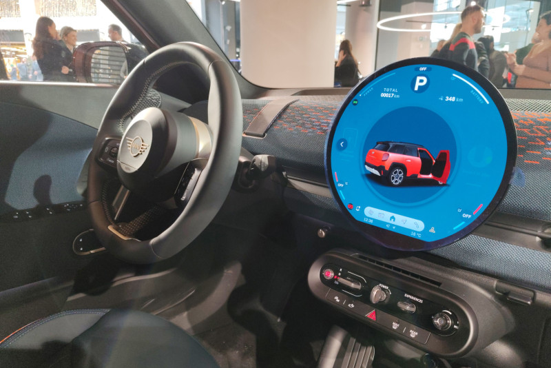 Ključni element enterijera Minija je prepoznatljivi okrugli centralni OLED ekran prečnika 9,4 inča, predstavljen 2023. godine.