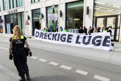 U opštini Grinhajde kod Berlina, više od 1.200 ljudi protestovalo je protiv proširenja teritorije fabrike Tesla, pokušavajući da uđu u prostorije.