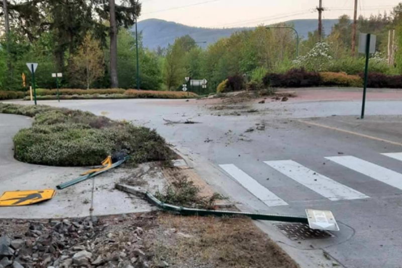 Policija u mestu Snokvalmi, istočno od Sijetla u SAD, izašla je na lice mesta gde su videli da je Cybertruck proleteo pravo kroz sredinu kružnog toka.