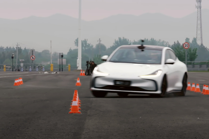Na snimku vidimo kako električni model IM L6 prolazi takozvani test severnog jelena, manevar izbegavanja prepreke na putu pri određenoj brzini.