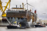 Prošle godine, brod se zapalio, a na njemu je bilo hiljade automobila, od kojih su neki bili električni. Brod je dotegljen do holandske obale, a potom je usledio ogroman posao istovara nekoliko hiljada automobila.