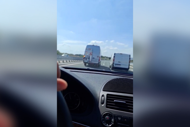 Na snimku koji je zabeležio vozač Mercedesa, vidi se pikap i kombi vozilo koji se najverovatnije trkaju, i pritom prave niz saobraćajnih prekršaja.