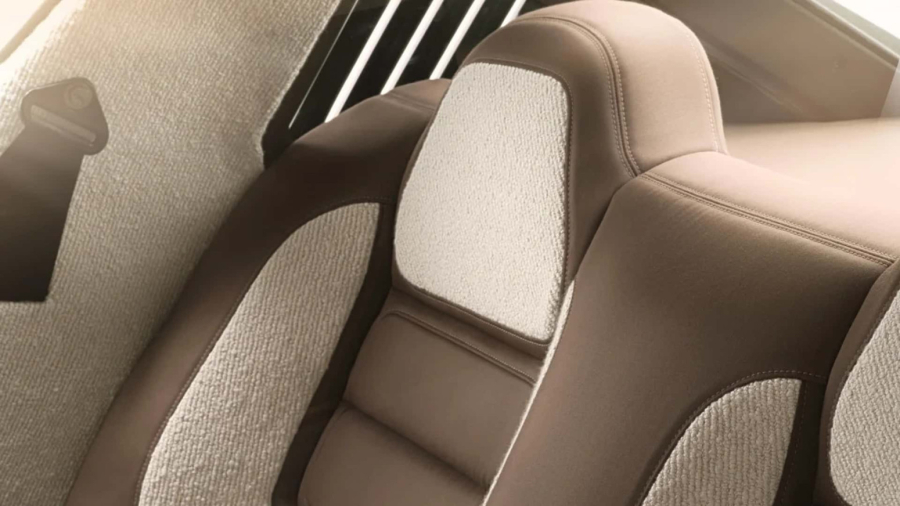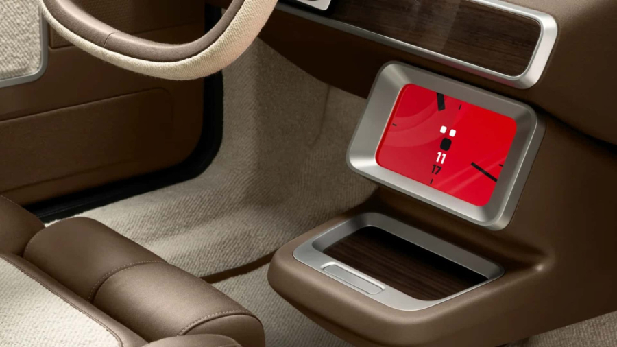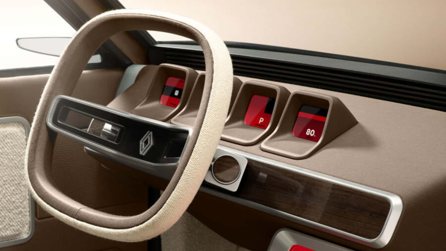 Unutra, korišćeni su materijali iz 1970-ih kako bi se napravila savremena kabina u kojoj su vešto sakriveni ekrani - četiri pravougaona displeja nalaze se iza volana, dok centralni displej stoji kao što bi stajao neki starinski radio.