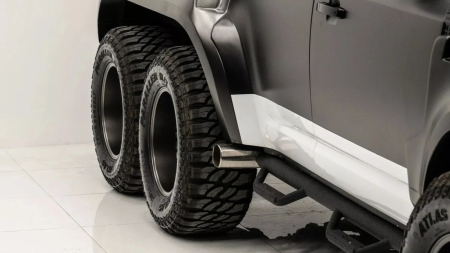 Za početak, šasija je presečena i produžena kako bi se napravilo mesta za treću osovinu, odnosno još dva točka. Za razliku od nekih jeftinijih 6x6 konverzija, ovi dodatni točkovi su povezani sa pogonom, ali izazovi idu mnogo dalje od toga.