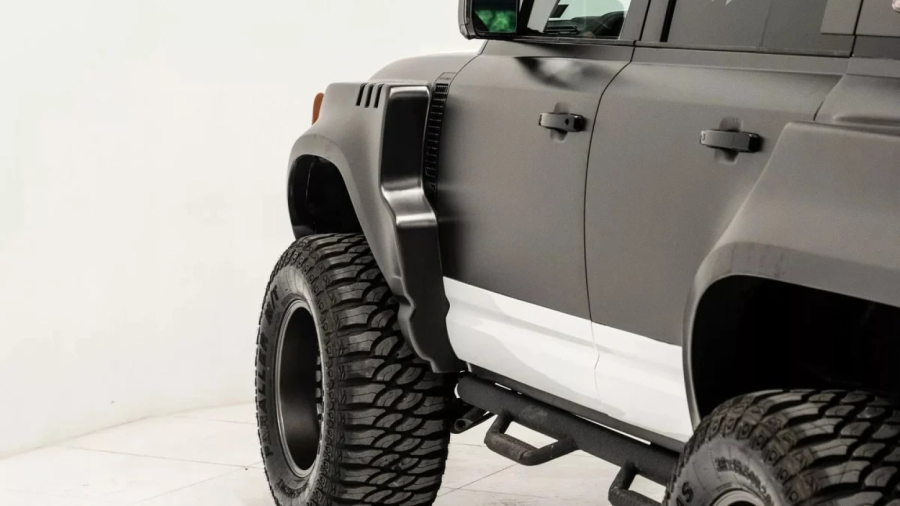 Kompanija je poradila na Defenderovom vešanju, tako da se može podizati i spuštati za oko 203 mm jednostavnim pritiskom na dugme. Izabran je 20-inčni set felni dizajniranih u vojnom stilu, a na njima su masivne 38-inčne gume koje bi trebalo da savladaju i najteže off-road staze.