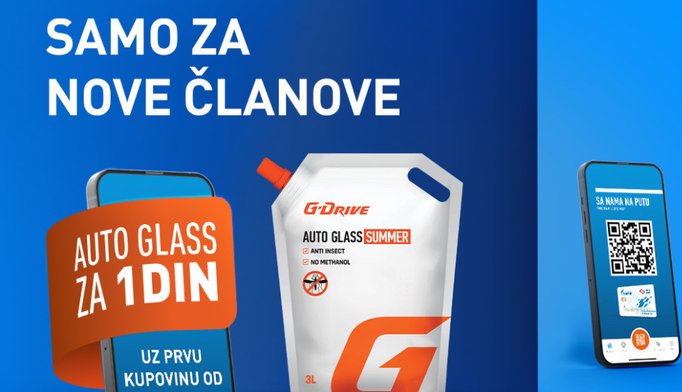 Lojalti klub „Sa nama na putu“ za nove članove nudi veliki broj različitih mogućnosti uštede, ali i sjajnu priliku da kupe G-Drive tečnost za stakla od 3 litra za samo jedan dinar, uz kupovinu 10 litara bilo kog goriva, do kraja oktobra.