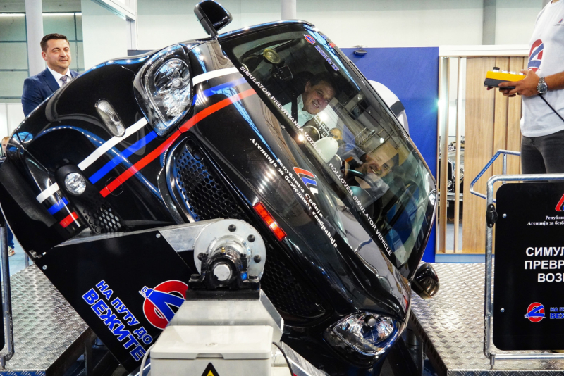 Agencija za bezbednost saobraćaja i Ministarstvo unutrašnjih poslova Srbije su, na zajedničkom štandu na sajmu automobila, predstavili novi unapređeni simulator prevrtanja vozila.