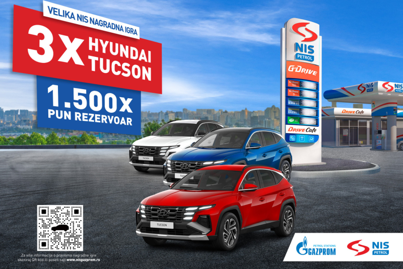 Na benzinskim stanicama kompanije NIS počela je Velika nagradna igra sa najvećim brojem nagrada do sada – tri Hyundai Tucson automobila i 1.500 punih rezervoara goriva.