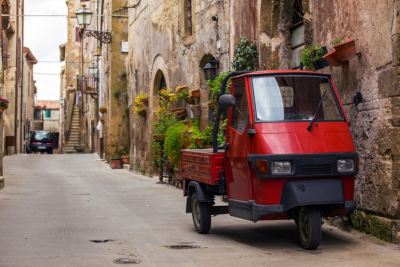 Skuter na tri točka Ape nije mehanički puno više od Vespe, ali sa krovom i prostorom za utovar, bio je savršen za uske ulice starih gradova ili strme makadamske puteve gde automobili teško prolaze.