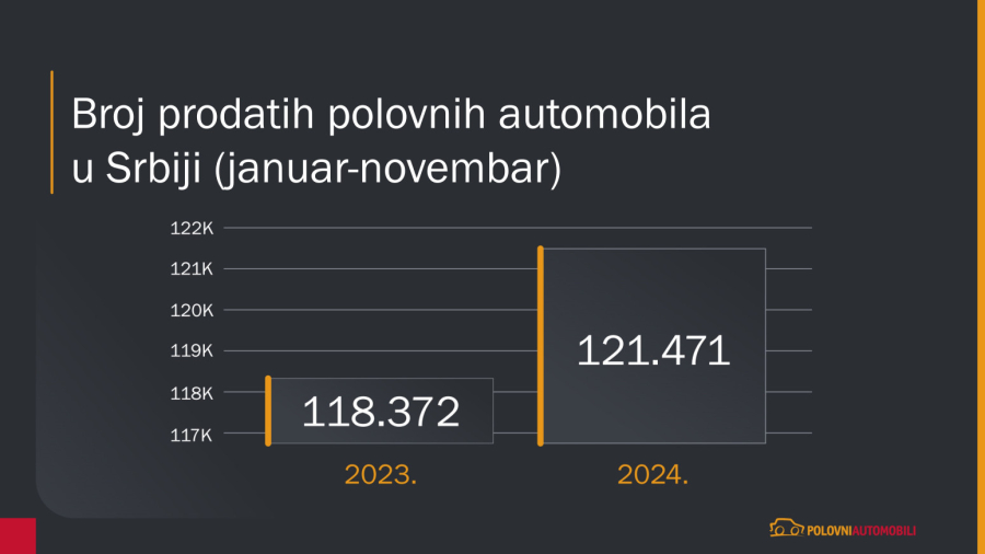 Sa druge strane, u prvih 11 meseci 2024. godine, prodaja polovnih automobila iz uvoza porasla je za 2,6%, što ukazuje na blagi oporavak.