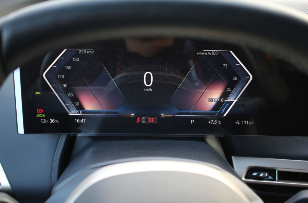 BMW nije predvideo mogućnost da u vožnji menjate intenzitet rekuperacije prilikom puštanja gasa, već je to stavka koju morate unapred, u meniju da odredite. Tako možete da izaberete opciju vožnje samo jednom pedalom. Kada stisnete gas, auto ubrzava, a kada je pustite, koči.