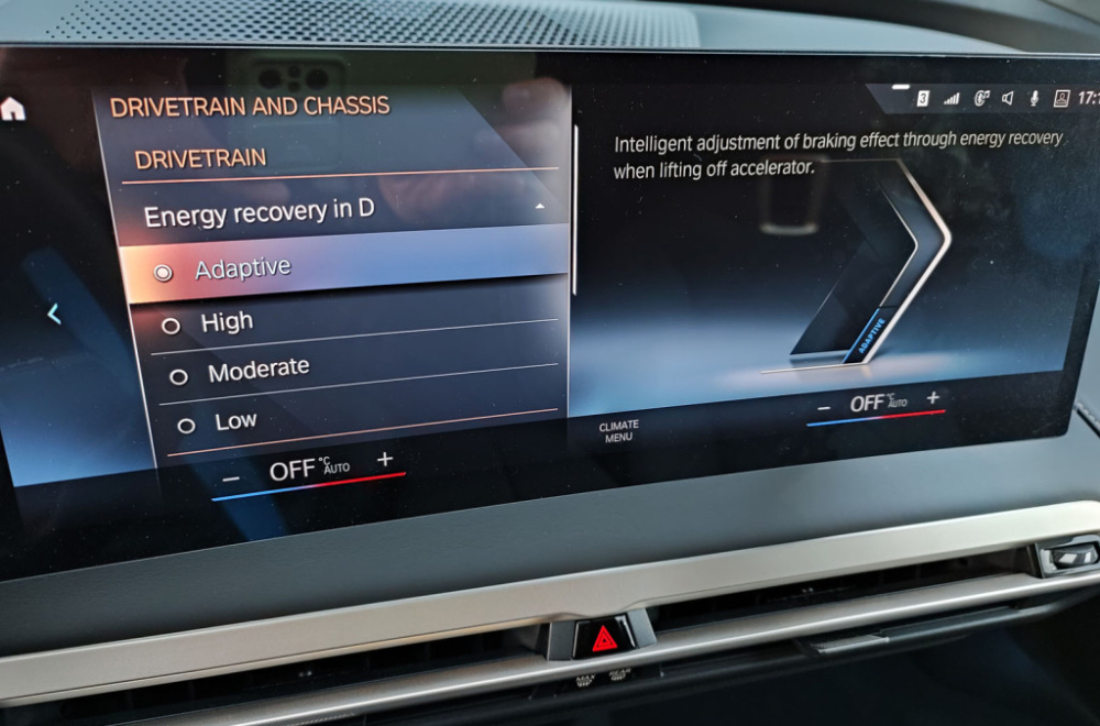 Možete u potpunosti da isključite rekuperaciju, koja će se aktivirati samo kada stisnete kočnicu. Na kraju, automatska opcija koristi radarski senzor.