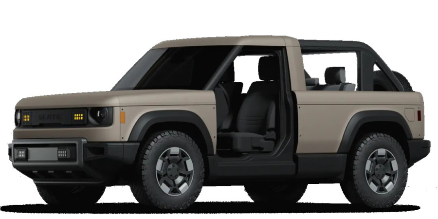 Slate je novi brend u SAD, a iza ove marke kao jedan od investitora stoji i Džef Bezos, vlasnik Amazona. U pitanju je jednostavan, električni, kompaktni pikap koji može da se modifikuje na razne načine (čak i da izgleda kao SUV) i igra na kartu niske cene - koštaće manje od 20.000 dolara.