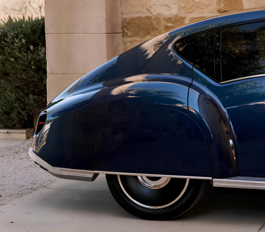 Vozilo se oslanja na retro estetiku 1930-ih – stil "Streamline Moderne". Ima ručno izrađenu drvenu haubu, okrugla prednja svetla, naglašene blatobrane, retro felne, "zatvorene" zadnje točkove i zadnja svetla nalik mlaznim motorima.