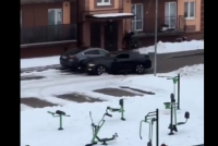 Uprkos tome što mu je otkinut branik, vozač ovog Mustanga nije se zaustavio - udario je još jedan automobil, vratio se u rikverc, pa udario u parkirani BMW. Ni to nije bilo sve, jer je udario nakon toga u još jedno vozilo.
