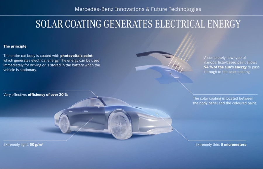 U Mercedesu su zato prethodnih godina pokrenuli razvoj projekta tzv. solarne boje, koja bi mogla značajno povećati domet električnih vozila.