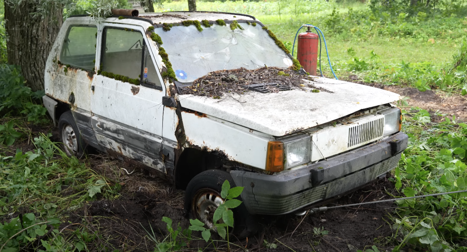 Trava je prekrila prozore Pande, dok su samo krov, deo haube i malo stakla virili kao da su arheološki nalazi iz dvadesetog veka na četiri točka. Vođen strašću (i prstohvatom romantike), ovaj jutjuber je odlučio da pokuša naizgled nemoguće spasavanje ove Pande u "prirodnom staništu".