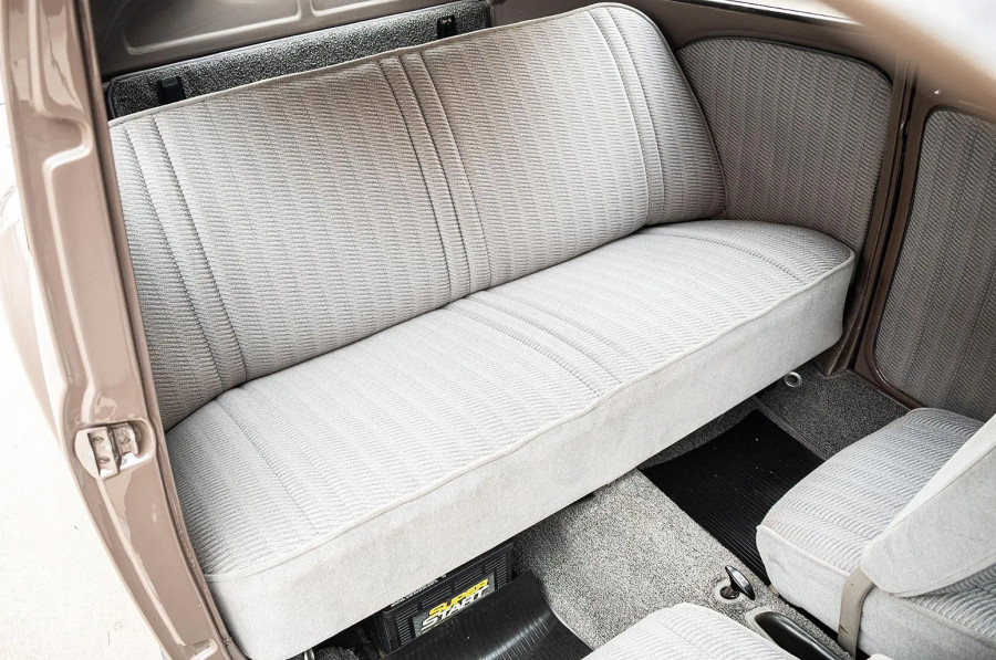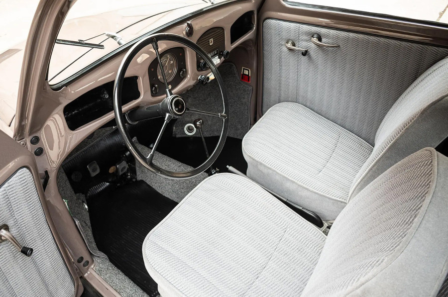 Buba izgleda kao da je tek izašla iz fabrike. Branici, obrubi farova, okviri prozora pa čak i kvake na vratima su u boji karoserije, bez ikakvih oznaka marke ili modela, što automobilu daje iznenađujuće moderan izgled.