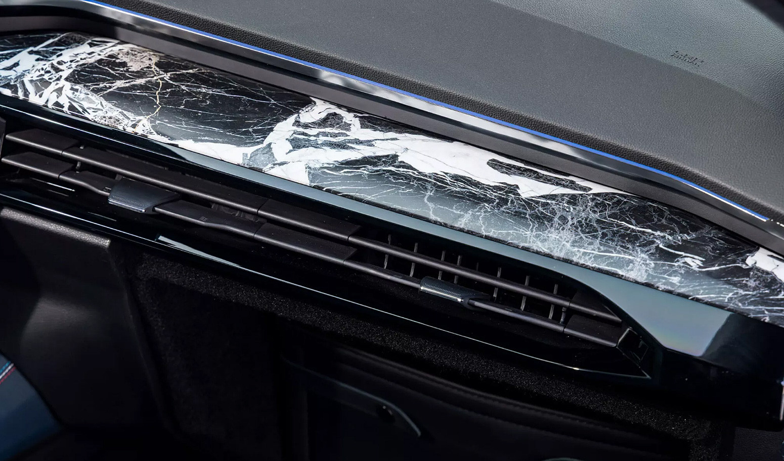 Rezultat je enterijer u kojem su centralna konzola pozadi, upravljač i instrument tabla obloženi crnim mermerom iz Pirineja, dok su paneli sa komandama izrađeni od tamnog bukovog drveta koje je oblikovao poznati majstor.