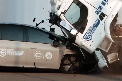 Na snimku se vidi direktan sudar između modela brenda Li Auto i kamiona Chenglong. Električni SUV mase između 2.580 i 2.610 kg udario je u kamion koji teži čak 8 tona, pri brzini od 60 km/h, dok se kamion kretao brzinom od 40 km/h.