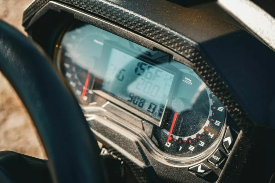 Uprkos registraciji u Arizoni koja ga čini legalnim za drumski saobraćaj, ovo i nije besprekorna mašina. I dalje se vozi na gumama iz 2018. godine, kontrolne lampice svetle kao novogodišnja jelka, brzinomer netačno očitava, a spoljašnjost nosi brojne ogrebotine i oštećenja boje.