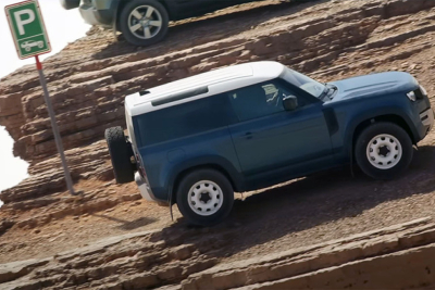 Land Rover je 2022. objavio reklamu u kojoj se mogu videti tri Defendera kako silaze sa broda, voze se gradom i kroz pustinju, pokazujući svoje terenske sposobnosti. Na kraju se dva parkiraju u rikverc na padini uz liticu, dok je treći krenuo ka provaliji. Kad se vozač približio ivici, parking senzori su ga upozorili da se stane, zaustavljajući ga pred samom provalijom.