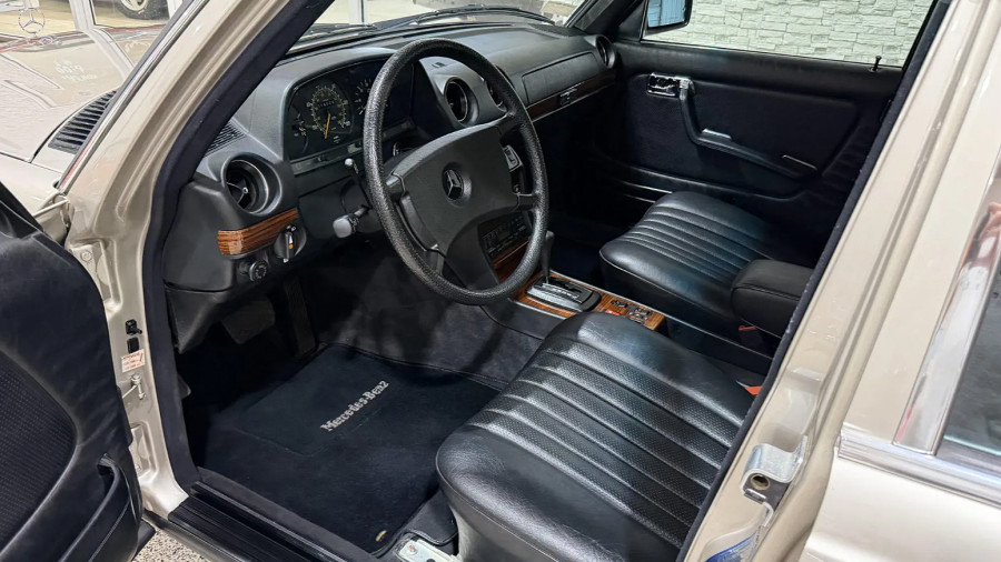 Automobil je ofarban u Smoke Silver Metallic nijansu, a dolazi sa fabričkim 14-inčnim aluminijumskim felnama, crno-hromiranim branicima i prepoznatljivim klasičnim linijama legendarne W123 serije.