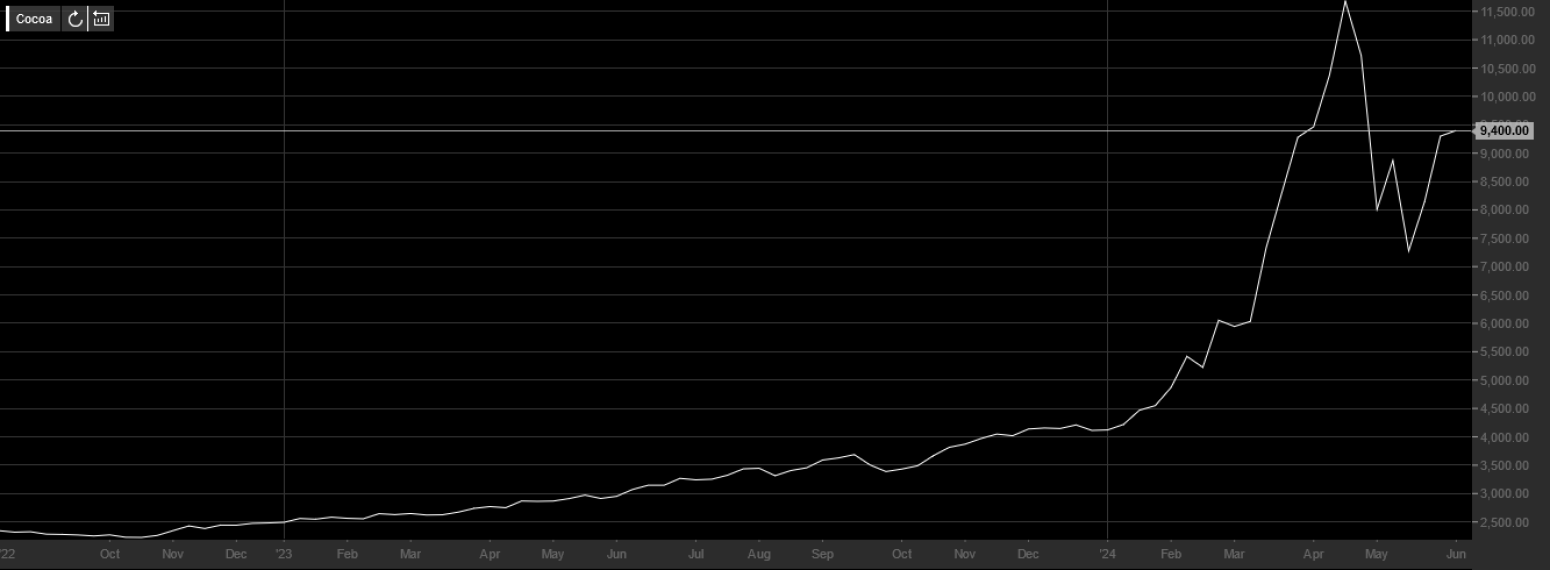 Nezapamćen rast cena je počeo prošle jeseni, a zatim je - prvi put u istoriji - kakao postao skuplji i od bakra. Prema poslednjim podacima (u trenutku pisanja ovog teksta), cena je oko 9.400 dolara po toni a nedavno je bila i preko 10.000.