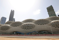 Eksterijer stanice, obložen betonskim panelima, karakteriše se složenom rešetkastom strukturom sa geometrijskim perforacijama. One smanjuju prodiranje sunčeve toplote istovremeno predstavljajući savremeni odraz tradicionalnih arhitektonskih elemenata karakterističnih za ovu regiju.