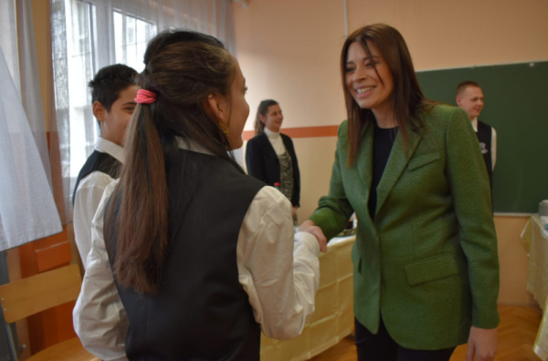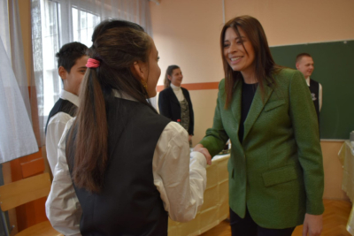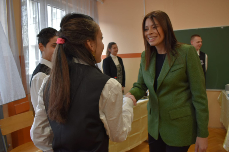 Objekat u kojem su smeštene obe škole, srednja "Branislav Nušić" i osnovna "Mitropolit Mihailo", ministarka Vujović obišla je zajedno sa Nikolom Bertolinijm iz Delegacije EU, stalnim predstavnikom UNDP u Srbiji Jakupom Berišem i predsednikom opštine Miodragom Nikolićem.