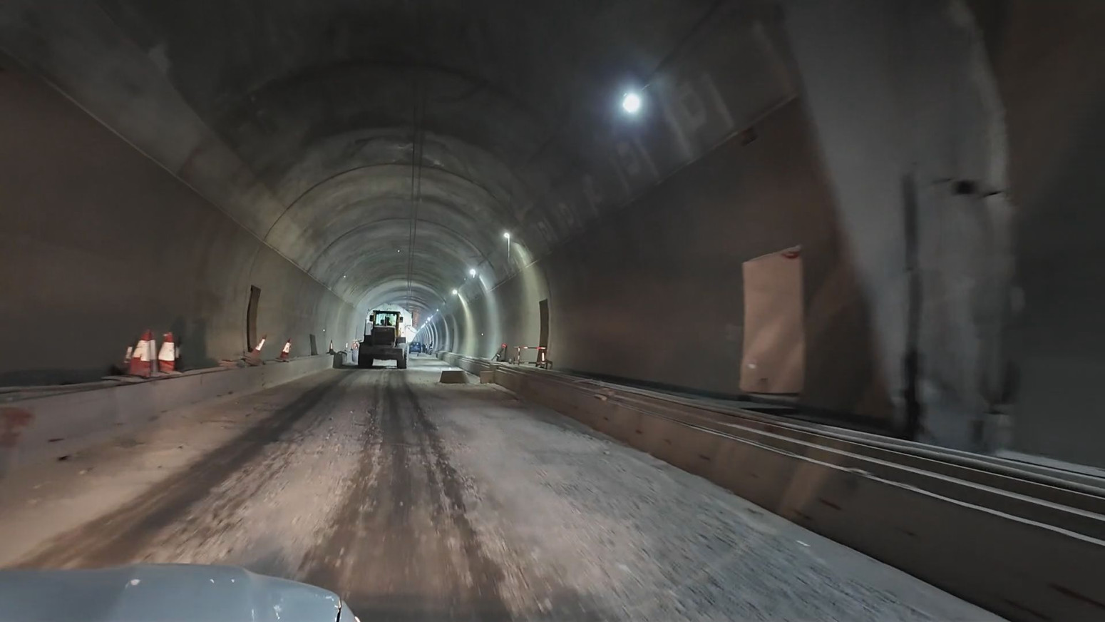 U desnoj cevi tunela Munjino brdo u toku su radovi na završetku sekundarne podgrade i izgradnji kablovskihh kanala ispod pešačkih staza kroz koje se montiraju nosači za različite vrste instalacija.