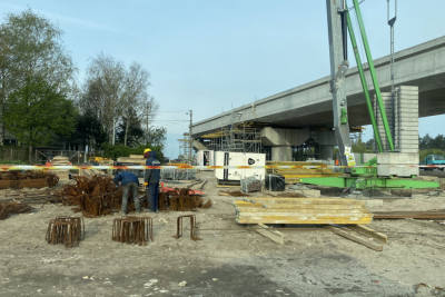 Kako je B92.net imao priliku da vidi, u toku su radovi na nadvožnjaku koji prelazi magistralnu prugu i Kurirsku ulicu. Budući da se pruga gradi na parceli koja je nekada bila njiva, tu se (tipično za gradilišta) sada nalazi mnogo zemlje i prašine. Međutim, meštani Zemun Polja ne moraju da brinu.
