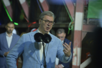 Predsednik Srbije Aleksandar Vučić izjavio je prilikom obilaska radova na tunelu "Iriški venac" da je srećan što se Srbija gradi, ali da nije srećan što su usluge pale zbog krize koje izazivaju blokaderi.