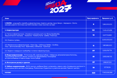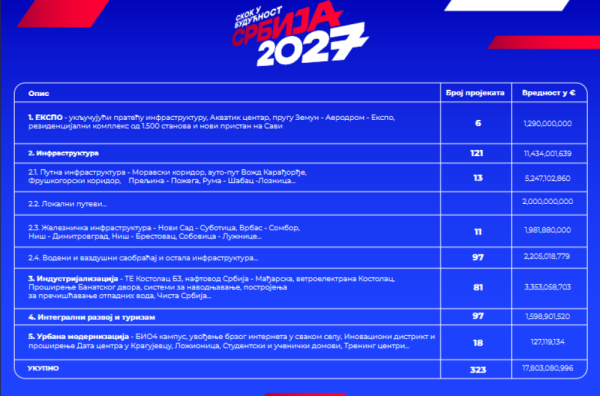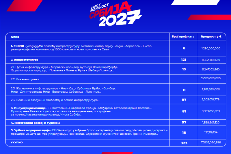 Do 2027. godine uložićemo u 323 projekta širom Srbije, koji su vredni ukupno 17,8 milijardi evra, napisao je Ministar finansija Siniša Mali na svom Instagram profilu.